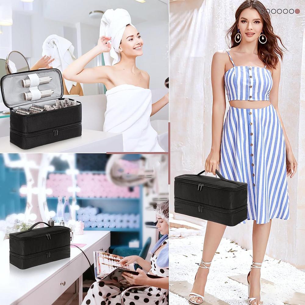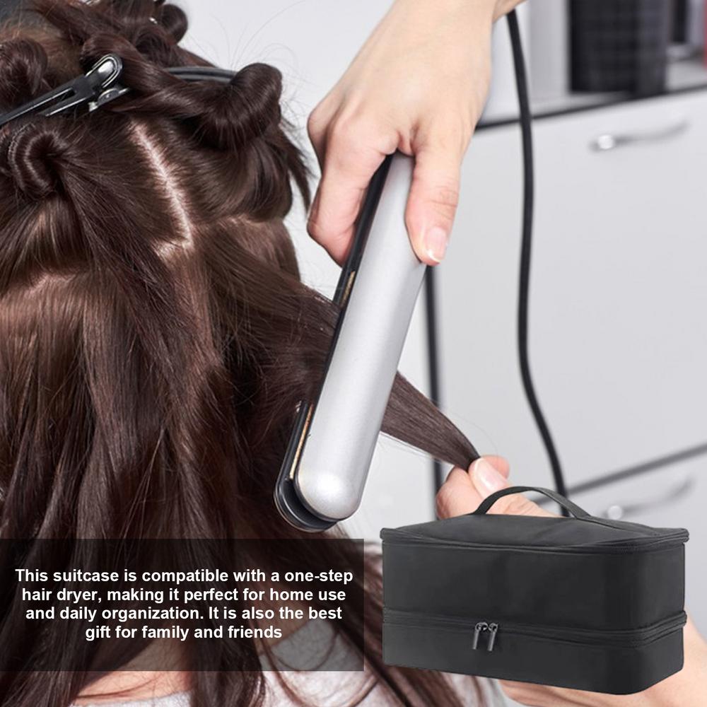 - Double-Layer Design: Separates tools and attachments efficiently. Top layer features multiple pockets for accessories, while the spacious bottom layer accommodates your hair dryer and hot tools.